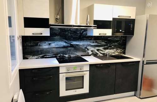 New fitted kitchen: dishwasher, oven, induction table, extractor hood, microwave, fridge, freezer, coffee maker and Nespresso coffee maker (food processor, kettle, toaster, iron, ironing board, etc.)