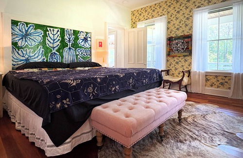 Calder House is owned by artist, Neil Powell. This stylish Bovina, NY naturescape, situated on 15 acres of gardens and woodland smack in the heart of the Catskills, sleeps 8-10 comfortably with 4 bedrooms and 2.5 baths. Chefs kitchen/dining for the whole family to enjoy. A spacious wrap around porch, fire pit, nature trails and in-ground pool. 15 minutes to ski slopes. Property managed by Neil and he will make you feel at home during your stay.