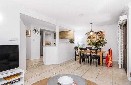 Set in a quiet complex, complete with a pool and a half tennis court. Calinda Sol 6 is a super quick walk to all Byron has to offer. With a coastal feel, the downstairs area comprises of open-plan living, dining and lounge area. Spilling out to a courtyard, the outdoor space is designed to invite shady afternoons chilling out, barbecues and catch ups.