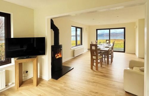 Calmdale consists of a kitchen with electric oven, induction hob, microwave, fridge/freezer, dishwasher, air fryer, coffee maker, and breakfast bar seating, a utility with washing machine and tumble dryer, a dining area, a sitting room with Smart TV with Sky, a sitting areawith Smart TV and woodburning stove, and a cloakroom. The bedrooms consist of a super-king-size with en-suite walk-in shower, king-size with en-suite bath, and a twin. There is also a bathroom. WiFi, fuel, power, starter pack for woodburning stove, bed linen, and towels inc. in rent. Outside, there is an enclosed garden with gravel, patio, garden furniture and gas BBQ and off-road parking for five cars. Two well-behaved pets are welcome. Sorry, no smoking. Uncover the best of Highland with a holiday at Calmdale. Note: Steps up to the property entrance. Note: Good Housekeeping Bond of 250GBP. Note: Children aged 4+ only. Note: Please abide by the Countryside Code with dogs on a lead. Note: The drive is steep with potholes. Note: Dogs are to be kept downstairs at all times and are not allowed on soft furnishings. Please note: this property can only accept a minimum of 7 nights stay and can only accept 1 booking a week. Please note: no Stag/Hen parties