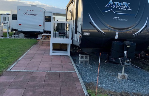 Nearly new 2019 Coachmen Apex luxury camper located on North Topsail Beach! You will be staying at a very popular camping park right across the street from a public beach access.