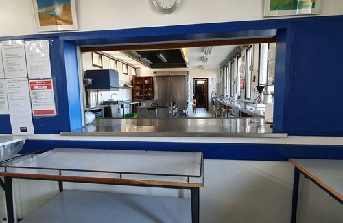 Huge kitchen with everything that belongs to, among other things, 2 fridge, small freezer and commercial dishwasher.
