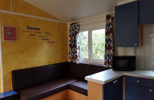 The Mobil Home includes a kitchen area equipped with fridge-freezer, 4 ring hob, microwave, coffee maker, toaster, kitchen utensils and crockery adapted to the number of people in the accommodation.