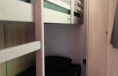 General Areas Total area (in m²): 35 Terrace surface area (in m²): 14.35 Living area (in m²): 15 Situation Neighborhood calm Ground floor View campaign Shady Additional Information Smoking accommodation: no Disabled access: no Seniority Year of rental: 2024 Animals Animals: accepted under conditions with supplement compulsory vaccination card kept on a leash Dog Cat on demand 1st category dog prohibited 2nd category dog prohibited Rooms & Beds Separate bedroom(s): 4 Separate bedrooms Single bed: 0 Double bed: 1 Dimensions: 140 x 200 Separate bedrooms Single bed: 2 Dimensions: 90 x 190 Separate bedrooms Single bed: 2 Dimensions: 90 x 190 Bed type Superimposed Separate bedrooms Bedding Bedding adapted to the number of people Beds made on arrival extra Sheets: not provided Pillows: provided Duvets: provided Mattress cover Bed(s) outside bedroom: 1 maximum people: 2 Sofa Child / Baby Travel cot: 1 on demand extra Baby bed: 0 Kitchen Kitchen: 1 in living room equipped Crockery/cutlery adapted to the number of people Kitchen equipment Cold water Hot water Sink: 1 Frieza: 1 Microwave: 1 Extractor hood: 1 Refrigerator: 1 Hobs: 4 burners: 1 Coffee maker: 1 Fruit press: 1 Dishes Dinner plates: 8 Dessert plates: 8 Deep plates: 8 Knives: 8 Forks: 10 Tablespoons: 10 Small spoons: 8 Covered range: 1 Coffee cups / saucers: 6 Glasses: 6 Can opener: 1 Bottle opener corkscrew: 1 Salad server: 1 Trivet: 1 Salad spinner: 1 Ice cube trays: 1 Pitcher: 1 Pans: 2 Paring knife: 1 Wooden spatula: 1 Bowls: 6 Rape: 1 Skimmer: 1 Cutting board: 1 Salad bowls: 2 Pans: 2 Lid: 1 Stainless steel pot: 1 Kitchen knife: 1 Wooden spoon: 1 Airtight boxes: 3 Mugs: 6 Wine glasses: 6 Ladle: 1 Dish: 2 Bread knives: 1 Paring knives: 1 Whisk: 1 Basin: 1 Sanitary Bathroom(s): 1 Shower Sink Towel radiator private family Bathroom linen: not provided WC: 1 separate from the bathroom Interior equipment Thermal installation Air conditioner Multimedia equipment Television free TV Channels French Wireless extra The entire establishment Outdoor equipment Terrace: 1 covered Garden table Garden chairs Barbecue extra allowed coal not provided