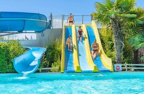 Details: Beach Access : 3500 m Wi-Fi access : all camping - extra charge Playground for children : huge inflatable structures Children's animation : 5-12 year old children's club open from 05/07 to 29/08, Monday to Friday Family animations : in the day and evening - free - from 05/07 to 29/08 Sports animations : from 05/07 to 29/08 Barbecue : 15€/week - subject to availability - to be specified when booking - to be paid on site Deposit (in supplement) Baby chair : 15€/week - subject to availability - to be specified when booking - to be paid on site Kids club : 5-12 years open from 05/07 to 29/08, Monday to Friday Bedding : 14€/week/single or double bed (sheets + sheets) - subject to availability - to be specified when booking - to be paid on site Crib : 15€ / week - to be booked in advance (subject to availability) and to be paid on site Animation level : 63 Number of stars : 4 Water park : outdoors + an aquatic area with spacebowl and insanity slides (minimum 1.2m and + 10 years) - outdoor swimming pool and slides are open 05/04 to 21/04, from 01/05 to 03/5, from 08/05 to 10/05, from 28/05 to 01/06, from 07/06 to 09/06 and from 05/07 to 30/08 - access with compulsory bracelet to the opening hours (see on site) Car park : free - 1 place/ rental bowling Breakfast : Bread deposit from 05/04 to 20/09 - see on-site rates and regulations Ping Pong : (raquettes not supplied) Swimming pool : outdoor heated 25°C from 05/07 to 30/08 - open 05/04 to 21/04, from 01/05 to 03/5, from 08/05 to 10/05, from 28/05 to 01/06, from 07/06 to 09/06 and from 05/07 to 30/08 - access with compulsory bracelet at opening times (to be consulted on site) Indoor swimming pool : heated to 27°C - open all season - access with obligatory bracelet at opening times (please consult on site) Environmental charge : 0.55€/day/person - to be paid on site Restaurant : snack bar - open from 05/04 to 20/09 Game room : flipper - babyfoot - pallet table - pay games - see on-site rates and regulations Tourist tax (surcharge) : €0.66/day/person over 18 years of age (rate subject to change) - to be paid on site Television : 5€/day - upon reservation and subject to availability - to be paid on site Multisports ground : football - handball - basketball Environmental display Pets Allowed : 5€/day/animal - to be paid on the spot - only one pet allowed per accommodation (to be specified as soon as booking is made) - category 1 and 2 dogs prohibited, compulsory vaccination book Coffee maker Deposit (in euros) : 300 Number of bedrooms : 2 Number of double bed : 1 Number of single beds : 2 Number of pieces : 3 Number of toilets : 1 Number of bathroom : 1 Cooking plate Fridge Surface (m²) : 22 Terrace Dishes and cutlery