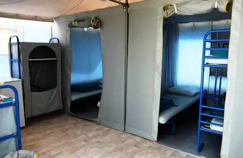 Accommodation: Lagoon Canvas Bungalow 3 Rooms 5 People Without Bathrooms with: - A kitchen area - 1 bedroom with 2 single beds, - 1 bedroom with a bunk bed and 1 single bed, Please note : accommodation without sanitary facilities