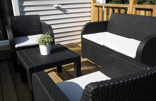 Equipment: The kitchen area is equipped with hotplates, a fridge, a coffee maker, a microwave and dishes. The terrace has a garden furniture.