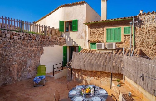 Banyalbufar: Large, rustic house "Can Masset", 3 storeys. In the centre of Banyalbufar, in an elevated position, excellent location: right in the centre but still quiet, 600 m from the sea, in a cul-de-sac. Private: courtyard. Outdoor shower, terrace, garden furniture, barbecue. In the house: internet access, WiFi, storage room for bicycles, central heating system. Very steep, narrow motor access. 20 m stepped path (15 steps) to the house. Roofed, parking (limited number of spaces), communal covered parking at 80 m. Parking space or garage only for small to medium-sized cars. Shop 250 m, restaurant, bar 20 m, bakery 80 m, café, pub garden 20 m, bus stop "Banyalbufar" 120 m, sandy beach "Playa de Palma" 25 km, shingle beach "Cala Banyalbufar" 650 m. Walking paths from the house, cycle lane 500 m. Nearby attractions: Bodega Son Vives, Esporles 10 km, Port des Canonge 11.7 km, Valldemossa 17 km, Estellencs 6.5 km, Palma de Mallorca Capital City 24 km. Hiking paths: Serra de Tramuntana, La Trapa, Estellencs, Ruta de Pedra en Sec. Please note: car recommended, no lift. Object suitable for 6 adults. The owner does not accept any youth groups. Airfield 35 km from the property. The apartment is located in a zone with limited traffic. Neighbourhood highly sensitive to noise. Quietness and good behaviour expected.
