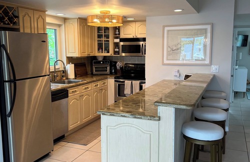 This beautiful, updated canal home has two bedrooms, two baths upstairs and a one-bath studio apartment downstairs. It offers various sleeping arrangements. 8 people can be accommodated upstairs and 8 people downstairs.