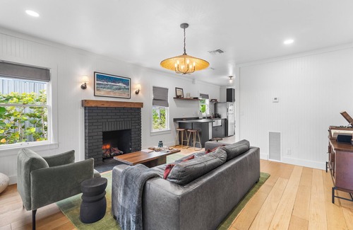 As soon as you enter this cozy cottage, you're welcomed by a thoughtfully designed, open-plan living area, designed and furnished with modern amenities and mid-century touches that span throughout the entire interior of this recently remodeled home.