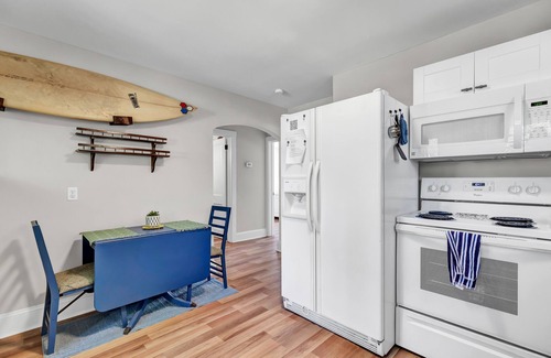 From the front porch swing to the repurposed sewing machine vanity this baby blue bungalow is packed with charm and comfort. As much as you may want to relax in the backyard all day, I highly recommend exploring the area. Within a half-mile radius you will find beautiful historic homes, 2 county parks and numerous local restaurants, bottle shops, and a local distillery which offers live music on the weekends. For the relaxing evenings in there is a grocery store less than a mile away and the kitchen has all of the cooking utensils you will need. Feel free to listen to a vinyl in the collection on the record player, or you can visit Gravity Records just down the road to find your own gem. Also nearby are vintage thrift stores, the Downtown Riverwalk, and Independence Mall. Of course, it would be an injustice not to mention that the beach only a 15 minute commute. This home is perfect for an entertainment packed vacation, or a peaceful home away from home. Cleanliness and comfort is our top priority. Fresh linens, towels, and furniture covers will be provided with every stay.