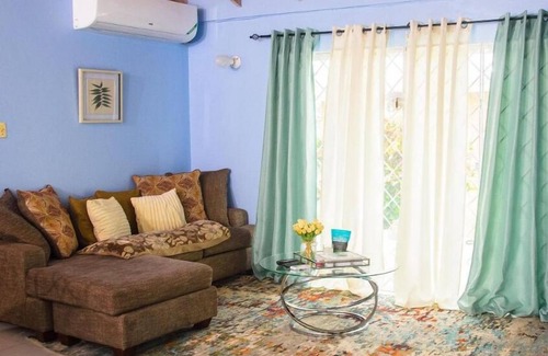 Escape to our Caribbean Country Style Retreat in St. Mary Country Club. 15 minutes from Ocho Rios Center. Our charming two-bedroom house boasts an open-concept space, a king-size bed, an ensuite bathroom, an office area, and an exercise corner. Enjoy the trellis patio and community pool in a secure, gated community. Book now for a perfect blend of comfort, convenience, and Caribbean charm!