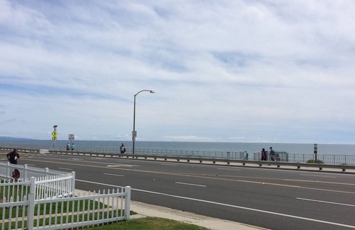 A walkway above the bluff and stairs to the walkway and State Beach below reveal miles of white sandy beach for sunbathing, swimming, bodyboarding, or surfing. Some beach equipment is provided, but a surf rental shop is 3 blocks to the north. Two of the photos here attempt to show the proximity of the house to the beach.