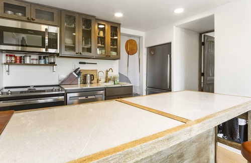 This spacious home comfortably sleeps up to ten guests with a total of six beds spread across two well-appointed bedrooms and two cozy lofts. The downstairs features a master bedroom with a queen bed and a private en-suite bathroom that includes both a walk-in shower and a classic clawfoot tub with scenic views. A second bedroom downstairs offers a king-sized bed, and the second bathroom--also located on the main floor-features a striking stone walk-in shower. Upstairs, one large loft holds two queen beds, and a separate small loft includes two twin beds-perfect for kids or extra guests.
