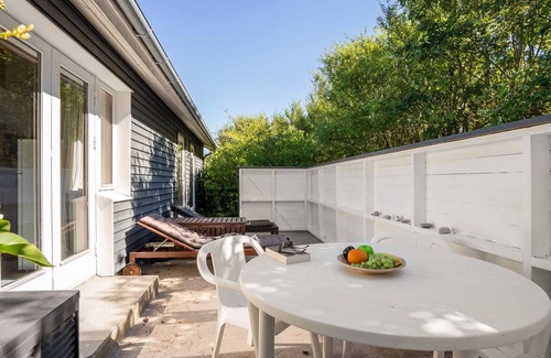 Single-family house, built in 1967. 25 m from the sea. Private: property 3'341 m2, well-kept garden. Terrace (40 m2), children's playground (swing). In the house: washing machine. Parking at the house. Grocery 600 m. Golf course 7.5 km. The owner does not accept any youth groups.