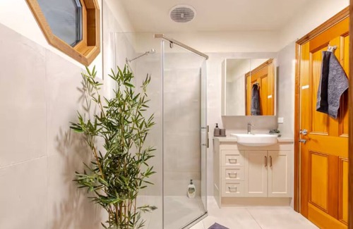 The quality Ensuite has a generous 1000 x 1000 corner shower, soft lighting, a quality rimless toilet, and isn't too close to the bed area to be intrusive.