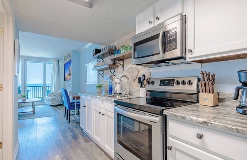 Step into Carolina Winds 1005 and start your vacation off on the right foot. Located in Myrtle Beach, this condo features 1 bedroom and 1 full bathroom, with breathtaking views of the Atlantic Ocean. Coastal charm oozes from this condo, with shiplap throughout the living room and bedroom. A modern kitchen featuring granite countertops and stainless steel appliances create the perfect space for culinary magic. Watch a sunrise on your private balcony, and take in the sights and sounds of the beach below. Amenities include flatscreen TVs, WIFI access, and 2 window A/C units. Carolina Winds also features an indoor and outdoor swimming pool, kiddie pool, lazy river, outdoor hot tub, and a game room.Nothing beats a day relaxing on the beach. Spend your toes buried in the white sand as you enjoy the warm sun and salty sea air on your face. Or explore the excitement of Myrtle Beach. Shops, live entertainment, family-friendly attractions and delicious restaurants await you.Reserve Carolina Winds 1005 today and discover the magic of Myrtle Beach.