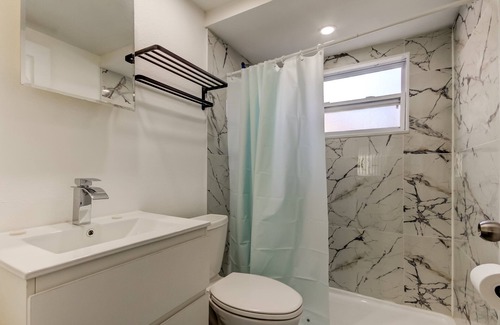 After a day of adventure, take a refreshing shower in the modern bathroom, complete with a hairdryer, shampoo, shower gel, and all the essentials to keep you feeling fresh and fabulous.