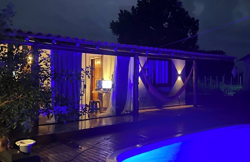 Nestled in Maraú, this 3-bedroom, 2-bathroom vacation home brings it all within your reach. Fans of nature and the outdoors will love being 24 minutes by car from Taipus de Fora Beach and 34 minutes from Barra Grande Beach. You'll easily make the 38-minute drive to Algodões Beach or the 25-minute drive to Muta Point.