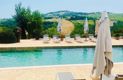 If you are looking to combine breath-taking views and tranquil living with contemporary comfort and style then Casa Cappella and Casa Ciliegia make the perfect choice. Located in the heart of unspoilt Le Marche, each of the stone houses is a treasure, having been lovingly restored with a close eye to detail and a very high quality finish. The houses sit either side of the swimming pool, each with its own private covered dining terrace and enjoy sweeping views of the valleys as they rise to the mountain range. During the summer months, you will be welcomed at the many traditional festas, which celebrate local wines and produce from fish to fungi. There are a wide choice of local restaurants, in the surrounding villages, with the nearest just a short, 500 metre, walk away. At the coast, which is a 25 minute drive, will find 'blue flag' beaches extending for many miles with a great many fresh fish / seafood restaurants & bars or drive for about 60 minutes and you are in the mountains with fresh water glacial lakes and golden eagles soaring overhead. If you want to escape the quiet life for a day Ascoli Piceno is close as are the fashionable shops and designer outlet at Citivitanova Marche.