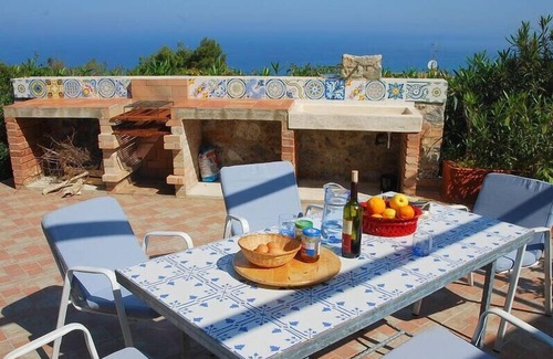 The house consists of a main building (70 m²) with dining room with sea view, an open kitchen, 2 double bedrooms and 2 bathrooms. There is also a guest house (16 m²) with private entrance, a double bedroom and a bathroom (bookable on request at an extra cost).Casa Capri has a wonderful private terrace which has a built in barbecue and a beautiful view of Capo Vaticano's blue sea. It is an ideal place to have breakfast or a drink in the evening.