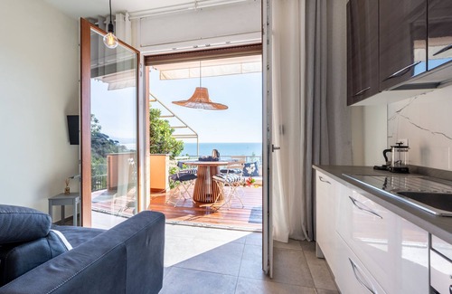 "Casa Clio", 3-room apartment 87 m2, on the ground floor. Bright, fully renovated in 2023, beautiful and modern furnishings: living/sleeping room with panoramic window with 1 double sofabed, dining table and TV. Exit to the terrace. 1 double bedroom. Exit to the balcony. 1 room with 2 beds. Open kitchen (oven, dishwasher, 4 induction hot plates, toaster, kettle, electric coffee machine). 2 showers/bidet/WC. (extra), air-conditioning, forced-air heating. Heating available only from 15.10. to 15.04. Large terrace. Terrace furniture, barbecue, deck chairs. Very beautiful panoramic view of the sea. Facilities: washing machine, iron, baby cot, hair dryer. Internet (WiFi, free). Parking. Please note: 1 small pet/ dog allowed. Private entrance, smoke alarm, fire extinguisher. IT009065C24WSIJDA7