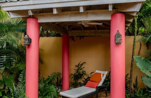 Three other luxurious, private bedroom suites (two with queen beds and one that can be arranged as a king or as two twins) are accessed via enchanting outdoor corridors, providing ultimate privacy even when vacationing in a group. The fifth "bedroom" is actually a studio apartment with kitchenette, 2 queen beds, futon, and full bath.
