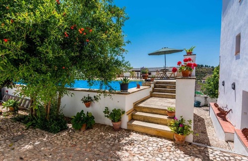 The complex has a stone pool next to our beautiful pomegranate tree, and a terrace where you can get some fresh air and have a barbecue, play, or relax contemplating the wonderful unique views of the Moclín castle, which is illuminated at night by and for the people. For the more sporty, there is a free football and basketball court. And a paddle tennis court next door (also free) a five-minute walk from the establishment.