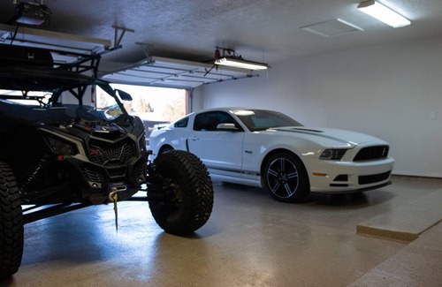 The garage is spacious with beautiful epoxy floors. Park your car, truck, SUV, motorcycles, mountain bikes, ATVs, and boats.