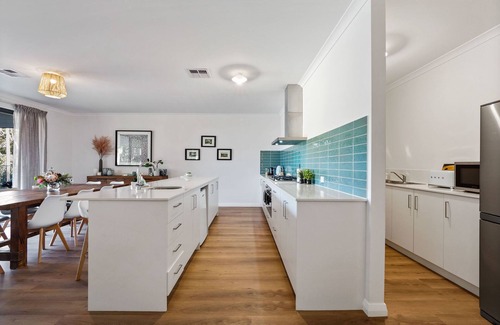 Pets - Please note there is a fenced area for pets, however, we are not confident enough to advertise this space as completely escape-proof. We believe small dogs may squeeze under the fence, and dogs of all sizes may be able to dig their way out if left for periods unsupervised. The property backs onto Biddle Road which does have tendencies for high-speed traffic. Strictly no pets permitted in the pool or fenced pool area. Extra pool service fees will apply if there is evidence that dogs have been swimming in the pool. No pets are permitted on indoor or outdoor furniture and please keep pets out of any rooms with carpet. Guests must bring pets own bedding, food & water bowls and anything else they may need. No responsibility will be taken for pets by the property manager, True South Escapes or by the owners of this property. Bring your pets entirely at your own risk.