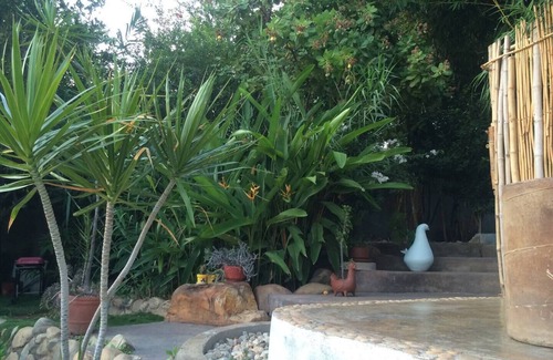 Private suite set inside a garden with a contemporary classic Mexican art deco style. Complete with a/c and it's own kitchen, bathroom, covered front and back decks, king size bed, hammock, outdoor seating / dining. Located at La Punta area of Puerto Escondido. Less than 10 minutes walk to beach & a very relaxed bar / restaurant strip. Spend your entire stay barefoot if you want! Fibre Optic internet! The house is on a property with a larger 5 bdrm house, also available under my profile.