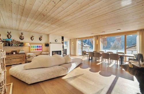 285 mq di raffinatezza con spa privata, terrazza di 30 mq, giardino e garage. A soli 150 m dalle piste da sci, raggiungibili anche con lo ski bus gratuito a 20 m. Gli interni, in legno massello naturale e pietra di Lucerna, creano un'atmosfera calda e accogliente.