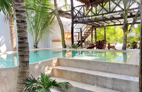 A wonderful Mayan pool with a great ocena view!!! Next to the pool you have an amazing Palapa, You can take a delicious nap in our PALAPA! and cook at a new Barbacue.....