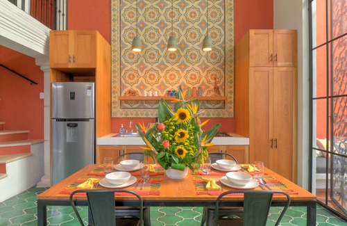 Burro y Flauta owns and manages several other vacation homes in the historical center of Merida (between 1-5 bedrooms); please check them all out! held when the reservation is made to cover any damage during the stay. An additional security deposit will be required for stays longer than one month. Maid fee: For rentals in excess of 1 week, weekly cleaning will be provided at no extra charge. Electricity is included for stays of 2 weeks or less; and for stays of longer than 2 weeks, no electricity is charged unless the usage greater is USD$3 a day for the 1BR or 2BR homes, or USD$5 a day for the larger homes. Furniture and décor from pictures may differ. We are always upgrading and improving the look and feel of our property for the comfort and pleasure of our guests.