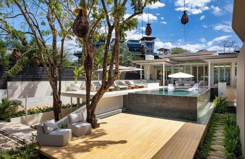 Casa Luna, a beautiful sanctuary nestled within the gated community of Punto San Francisco , Playa Langosta , Tamarindo . With private beach access, lush hanging gardens, saltwater pool, this design-forward home is a haven of luxury and tranquility.