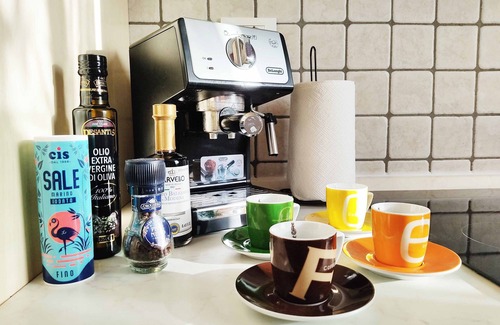 Furthermore, the apartment includes a spacious and fully equipped kitchen with everything you need to cook family meals. You will find an induction hob, a refrigerator with a freezer, a dishwasher, an espresso coffee machine, an electric oven, and a complete set of cutlery, dishes, and accessories. Tablecloths, runners, and placemats will be available to make your dinners even more enjoyable.