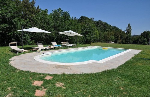 The villa can accommodate up to 28 people. You will share a beautiful swimming pool and a large garden where there is also a characteristic pond.