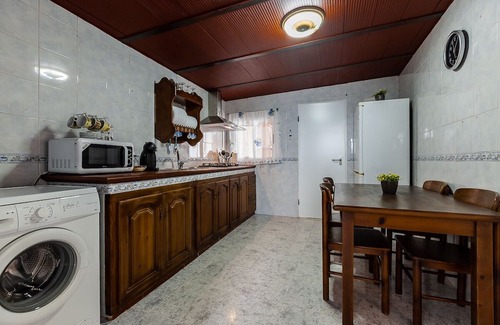 Cocina: fogones, nevera, cafetera, exprimidor, tostador, batidora, lavadora, menaje, microondas, hervidor eléctrico( solicitar propietario).