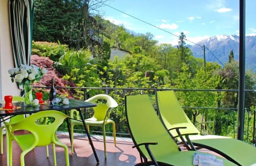 San Nazzaro 18 km from Locarno: Beautiful, comfortable apartment house "Casablanca", 2 storeys, surrounded by trees. 3 apartments in the property. On the outskirts, in the district Gambarogno, in a quiet, sunny, elevated position, in the countryside, south-west facing position. For shared use: natural state property, terraced garden, swimming pool angular (seasonal availability: 20.May. - 30.Sep.) with internal staircase. Patio, pergola, garden furniture, barbecue. In the house: storage room for bicycles. Linen change (suppl. charge extra). Towel change (suppl. charge extra). Room cleaning on request (extra). Motor access to the house. Roofed, parking at the house. Bus stop "Casenzano, La Tempelina" 110 m, railway station "Gerra, Gambarogno" 2.1 km. Walking paths from the house 10 m. Nearby attractions: Locarno-Ascona, Isole di Brissago, Mercato Luino, Ponte Tresa it, Mercato Cannobio IT, Swissminiatur, Melide, Schookoladen fabrik, Caslano. Well-known ski regions can easily be reached: Bosco Gurin, Nara, Airolo, Carì. Well-known lakes can easily be reached: lago Maggiore, Lago di Como, Lago di Lugano. Hiking paths: Monte Gambarogno, Monte Tamaro, Monte Lema, Gardada. Please note: car recommended. Suitable for families, suitable for seniors baby equipment on request (extra). Additional accommodations can be booked. Property ref. CH6575.25. Is situated on the same property.