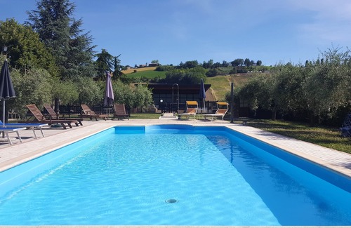 Casale Terra e Sole, private pool, Jacuzzi, 9 bedrooms, 22 people, is located in Montegranaro. Casale Terra e Sole, private pool, Jacuzzi, 9 bedrooms, 22 people, provides accommodation, featuring Parking, Pet Friendly, Pool, among other amenities. This Villa features Parking, Pet Friendly, Pool, to make your stay a comfortable one.