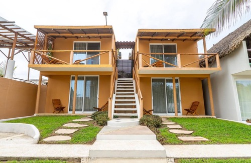 Discover serenity and joy in our one-bedroom suite.With panoramic views of the ocean and lagoon, this beachside retreat is the perfect escape for couples. Relax on the terrace with the sea breeze caressing your face. The charming and cozy interior creates the ideal atmosphere for unforgettable moments. Experience the magic of Puerto Escondido from the comfort and luxury of our oceanfront bungalow.