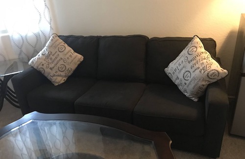 Our beautiful CASITA with separate entrance has a one bedroom (king size bed) one bath and a living area near green belts /recreation. It’s has a microwave/ fridge/ TV and a pull out coach. There is no washer/dryer and no kitchen. The house is 9 months old and brand new. The casita is SUPER clean and well maintained. NON SMOKING AND NO PETS.