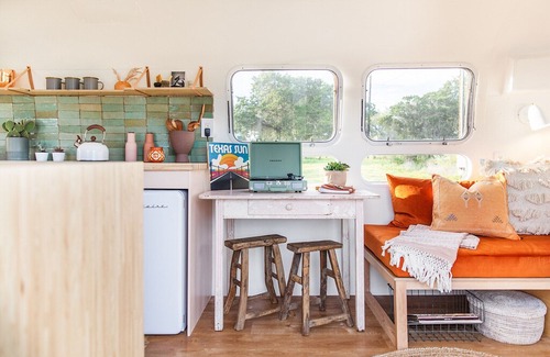 The airstream is a 1972 Sovereign. It's 31 feet of pure retro beauty! We remodeled the inside this year with the help of an interior designer, Kim Lewis.