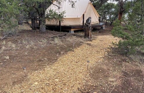 Looking for a Glamping experience? Hope Acres is in the tall Pinion Pines at 7800 feet atop of a Mesa in Northern Utah. Just minutes from 2 large Reservoirs, Strawberry and Starvation to include mountain lakes, rivers for fishing, boating, Canoeing, Kayaking, Swimming and other water activities. While the property lies in the middle of mountainous country there are many hiking trails as well as off road UTV and ATV trails for riding the back country. If your into sightseeing then this is the place, with many different species of wildlife that roam this beautiful landscape as well as a Birds Eye view of the high terrain that awaits you. Hope Acres has beautiful Bell Tents that are placed on elevated decks with comfortable Queen beds and some twins. Each tent boasts air Conditioning that provides the comforts of home while enjoying the outdoors. Each camp site offers a bathroom as well as a shower, picnic table, Hamock, BBQ and outdoor sink, amenities for an enjoyable experience. If you are looking for a hideaway then come experience the beauty while relaxing and making memories at Hope Acres, we look forward to seeing yo