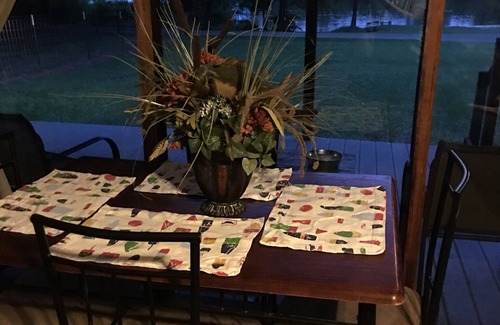 House has central heat/AC. one bedroom has two twin beds, one bedroom has a queen bed. Two smart TVs, Direct TV package, Internet, and DVD player. If you have a Netflix, amazon prime, or other streaming services you can sign into your account on the smart tvs. Has a great lake view from inside the house or sitting on front porch. Bring your favorite four legged family member with you...they need vacations too! No extra charge for your pets.