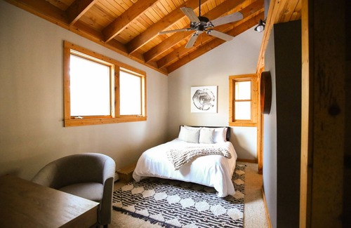 A thoughtfully curated chalet located in beautiful Brickyard Creek. The Cedar Chalet offers a spacious living room, full kitchen, two bathrooms, and two bedrooms that can comfortably accommodate up to five guests - perfect for a family or group of friends. A wood burning fireplace sets the stage for a memorable stay in the Northwoods; cozy up after a day or snowshoeing or sit fireside with one of many unique board games provided. The main level features a walk-out suite connected to a screened-in porch that runs the width of the home. Enjoy the sounds of the forest while you enjoy a meal or relax on the porch daybed.