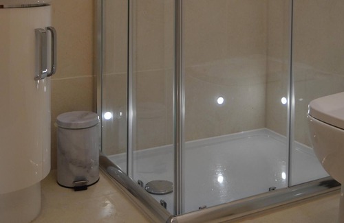 A door to the right of the lounge leads into the ground floor bedroom. With kingsize bed, wardrobe, dressing table and smart TV the bedroom further benfits from patio doors to enjoy the garden through. An en-suite complete with shower, WC and sink completes the ground floor suite.
