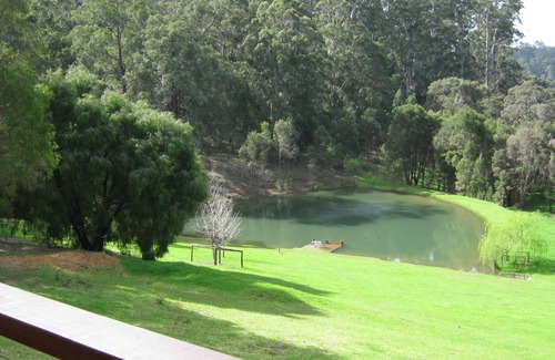 Your stunning chalet "Orion" is set amongst 60 glorious acres and commands an awe inspiring view over the forest and valley below. Bordered by the Lefroy Brook and Warren River the chalet also has its own private dam stocked with both Rainbow and Brown trout. Sky windows above a King size bed complete the picture . Sleep under the stars for a truly unique experience.
