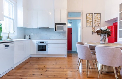 Experience Sydney’s bustling inner city atmosphere from this comfy 3-bed house perfect for those wanting a central base to explore the city. Offering modern interiors this chic property includes a cosy courtyard with outdoor seating and BBQ to enjoy. Situated only metres from the thriving Enmore Rd shopping and dining strip relishes in the local vibrant storefronts, boutique cafes, thriving bars, cinema, theatre and train station that’s only two stops to Sydney’s iconic CBD.