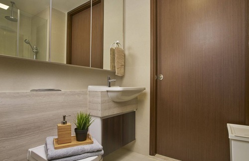 En-suite bathroom comes with high pressure rain shower facility, hot water heater, hair dryer and complimentary shampoo and shower gel. For long term guest, you may find the washer/dryer, iron and ironing board useful.